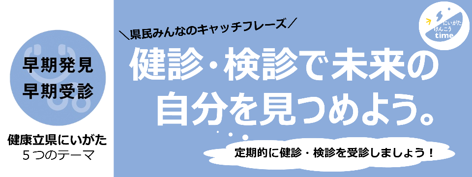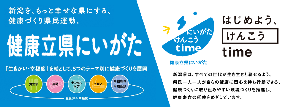 注目情報 健康立県 ヘルスプロモーションプロジェクト 健康経営の推進 糖尿病・慢性腎臓病(CKD)対策 からだがよろこぶデリ 健康立県にいがた 公式X(旧Twitter) 歯科疾患実態調査 目的別で探す 食生活 運動習慣 こころの健康 生活習慣病 たばこ アルコール がん 歯と口の健康 新着情報から探す 新着情報の一覧を見る RSS 現在、新着情報はございません。 よく見られるページから探す キーワードで探す 検索上位キーワード がん検診 禁煙支援 健康セルフチェック 生活習慣病の早期発見、重症化予防のための日常的に自分で行える健康チェックを紹介しています。 セルフチェックしてみる