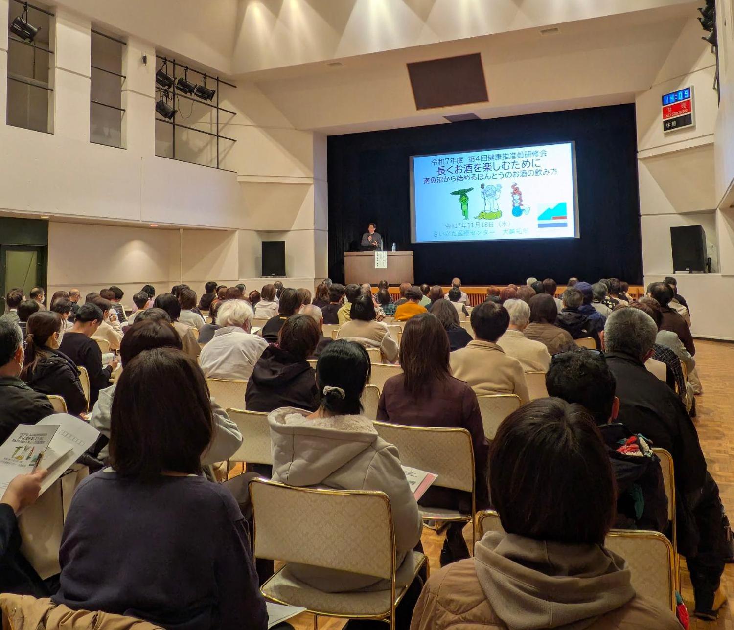 講師の大越氏は、飲酒が及ぼす健康や社会への影響、依存症は病気であること、お酒に依存する状況になった場合は、専門機関等に相談することの大切さ等をわかりやすく解説されました