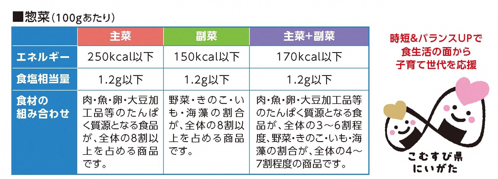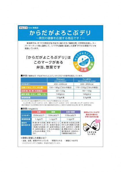 新潟県独自の「からだがよろこぶデリの基準」を満たした、皆さんの健康を応援する商品です