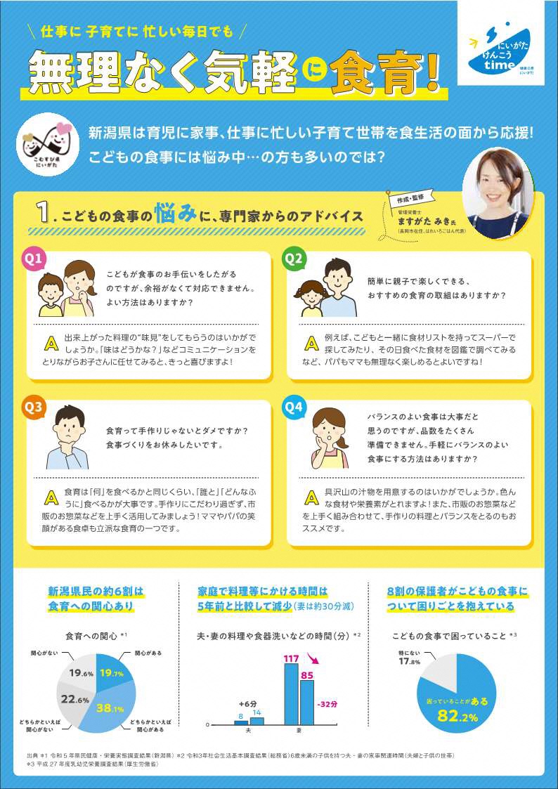 県では、子育て世帯が無理なく気軽に取り組める食育を紹介するリーフレットを作成 しました。