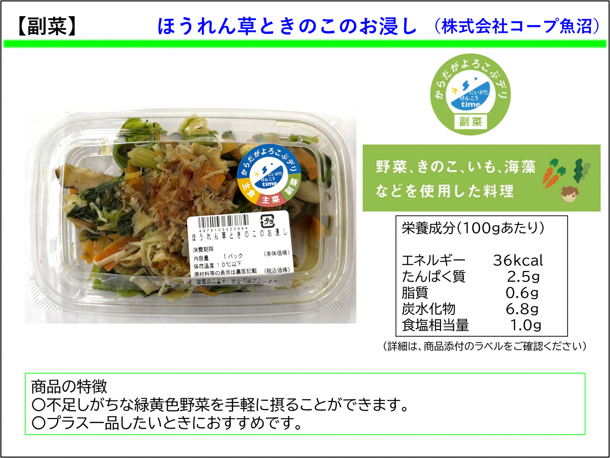 ほうれん草ときのこのお浸し(株式会社コープ魚沼) (PDFファイル: 446.8KB)