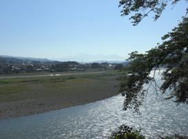 堤防にある駐車場は、20台以上の駐車が可能。また、蛇行している信濃川を望むことができる。