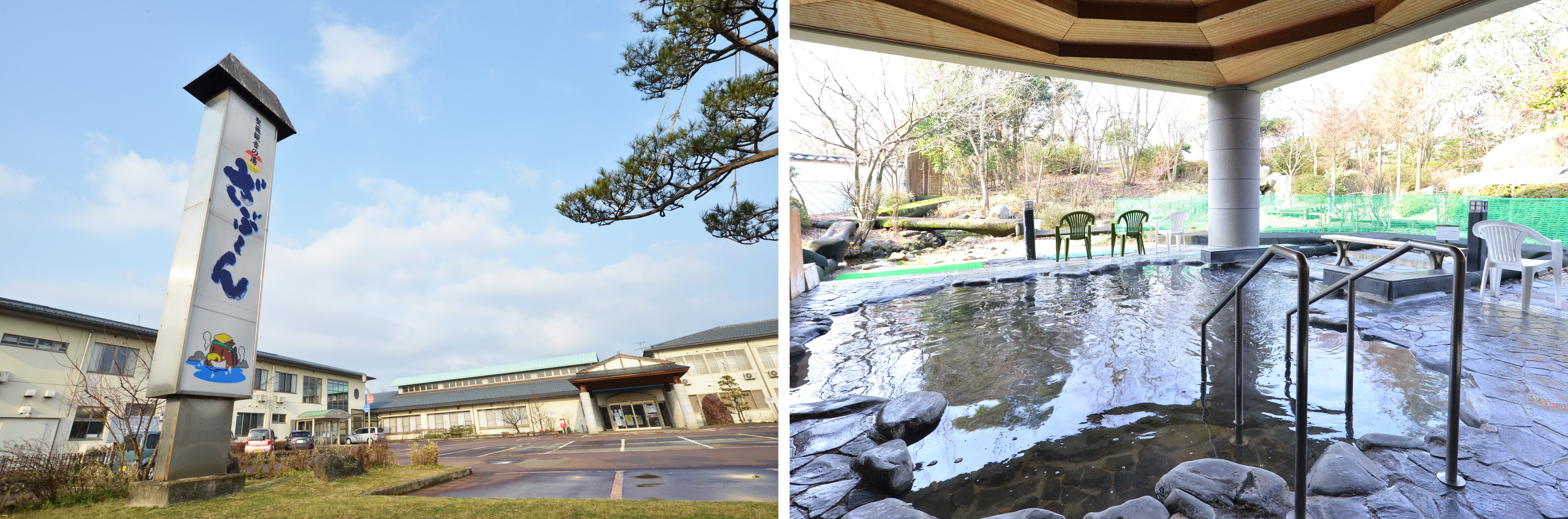 「聖籠観音の湯ざぶ~ん館」でウォーキングの汗を流し、疲れも癒やされます。宿泊施設もあり、気軽にのんびり過ごせます。