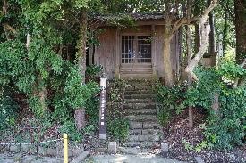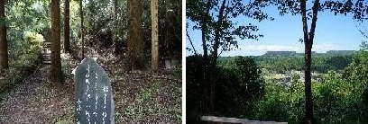 県道を横切り緩い登り坂道を300メートルほど登ると左手山中に羽茂城跡(鎌倉時代から室町時代にかけて佐渡南部を治めた羽茂本間氏の山城の跡)があり、羽茂平野一帯を見渡せる場所もある。