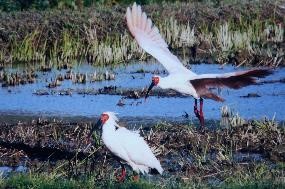 若鮎サイクリングロードを鳥居田橋で左へ折れると田園地帯が広がる。一帯にはよくトキが数羽の群れで飛来している。