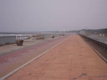 日本海の潮風を感じながら歩ける。クッション性のある地面は、歩き心地抜群!疲れたら、海を眺めながら一休みもできる。