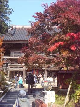 真っ赤に染まった山々の景色は、見事の一言。おすすめ紅葉ポイントは、「菅谷不動尊」。