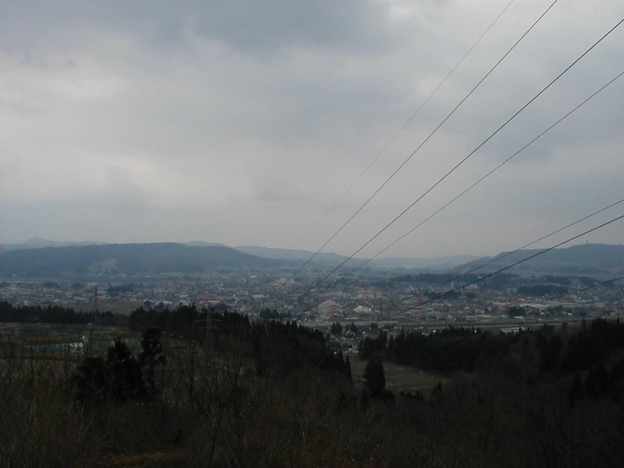 魚沼三山や街並みの写真を拡大する (JPEG: 78.5KB)