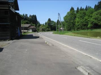 道なりに坂を下ると県道に出る。県道を左折し歩道を歩くとT字路の右角に観音様がある。