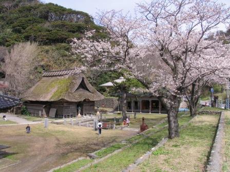 本殿は室町時代の特色を残す国指定重要文化財。宝物殿には、木造聖観音立像や船絵馬などがある。裏山には、国の天然記念物に指定されている「姫春蝉」が棲息している。
