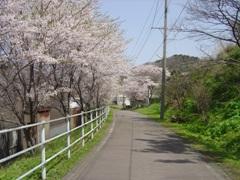ロード沿いには桜並木、花壇あり
