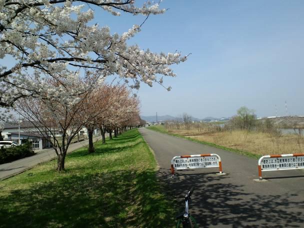 桜堤を見ながらの散策、ベンチもあり休憩できる。